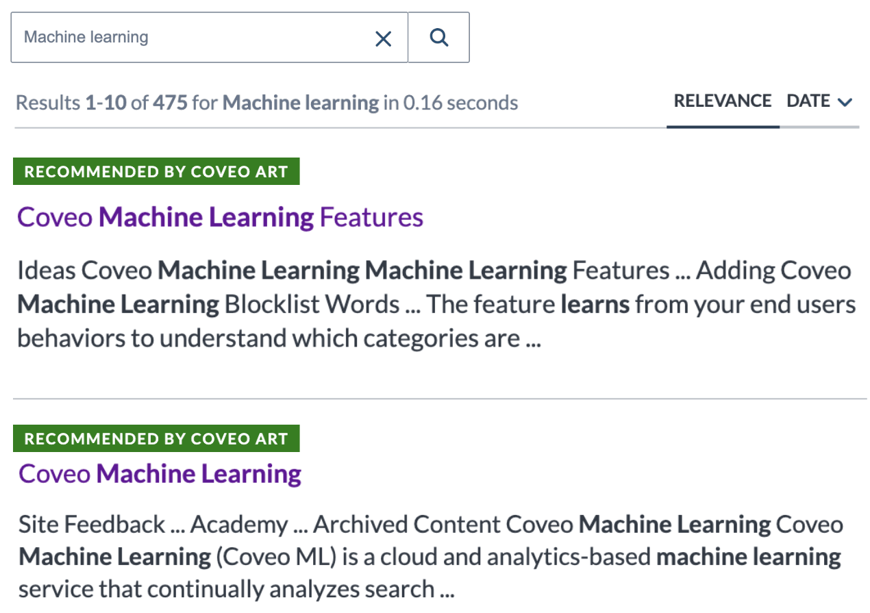 - Training Resources: Coveo Academy: Machine Learning