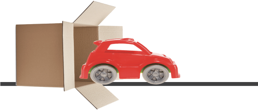 We now repeat the experiment, with a twist. We raise the yellow screen and show the colorful cube in the middle of the track. When the screen goes down, we trick the kid by secretly moving the cube behind the track and let the cart slide down. As far as the kid knows, the cart passed through the cube this time!