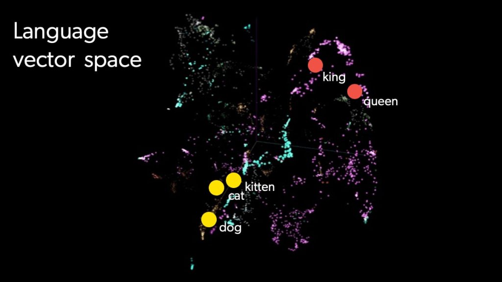 Think of a vector as a pinpoint on a multi-dimensional map. Instead of mapping locations, it maps ideas. Words and phrases that are closely related — like “laptop” and “notebook” — will be positioned near each other in this space. Meanwhile, unrelated words — like “laptop” and “banana” — will be farther apart.