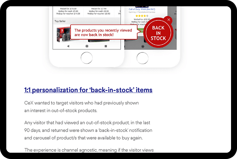 The omnichannel approach didn’t just help boost customer lift, but it also gave customers a seamless experience when moving from mobile to desktop. Continuing the shopping journey was made simple, and CeX realized additional sales from a more engaged shopping segment.