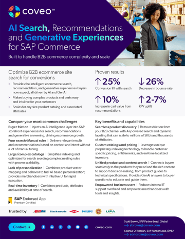 Find out more about Coveo AI Search, Recommendations and Generative Experiences for B2B SAP Commerce