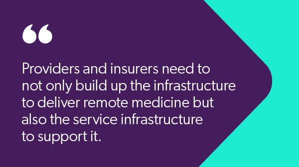 To meet this expanded demand, providers and insurers need to not only build up the infrastructure to deliver remote medicine but also the service infrastructure to support it.