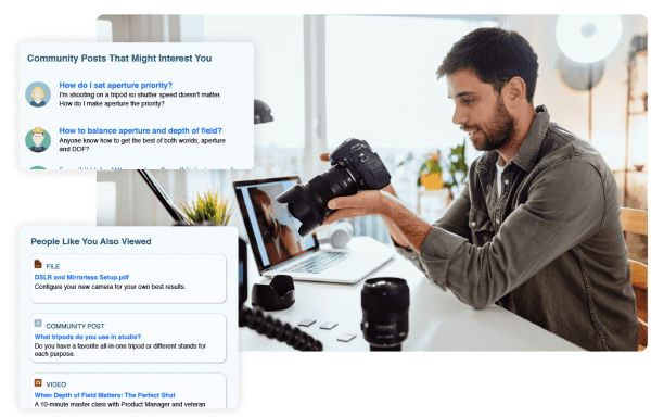 Personalized recommendations should be underpinned by intelligence that enables them to learn from your website user page and search navigation history to return the content most relevant to a given user within their current session. Tailoring the digital journey in this way will help users self-serve and increase their product knowledge in the process.