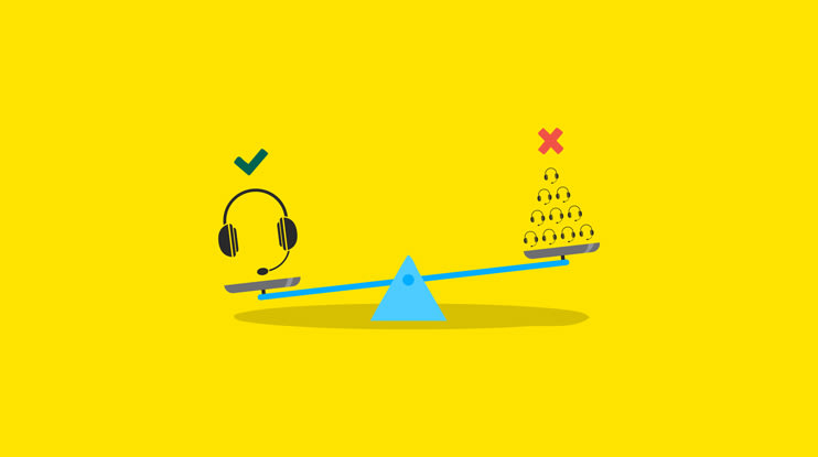 The thing is, support shouldn’t be only customer self-service, or only contact center. Your customers will have a range of preferences for issue resolution or product education. You can keep costs down by offering self-service for known questions — and then serve search analytics and interaction data to your agents. This creates a feedback loop that makes your agents more proficient and better positioned to ensure customer satisfaction. Watching the clock is counter to asking your agents to take whatever time is needed to make sure the customer loves your company by the end of the call. You can’t rush love!