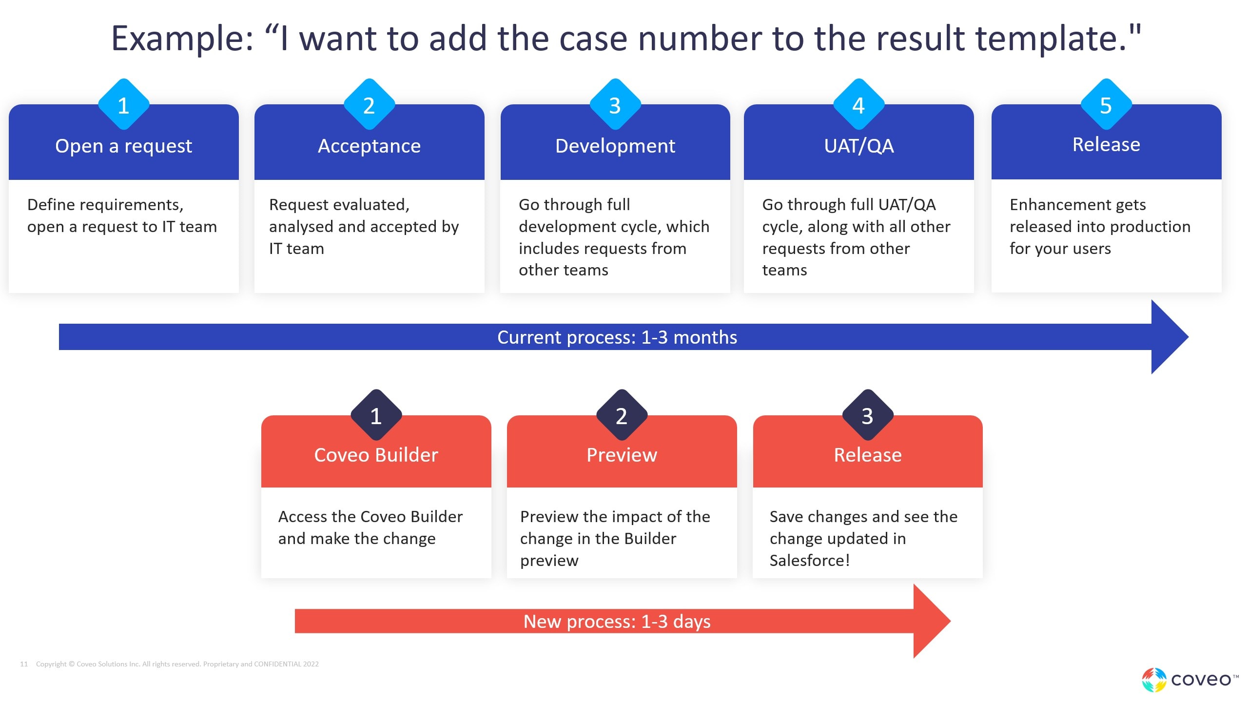 Of course, customer service is a bit different from enterprise to enterprise. Customer behavior changes. Service channels evolve and expand. All of this means customer service teams must constantly adapt their agent experience to better support customers. In the past, however, Coveo Admins had to contact IT to make their desired changes in Salesforce, often waiting weeks to see those changes rolled out in production.