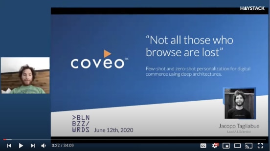 - Few-shot and Zero-shot Personalization using Deep Architectures (Berlin Buzzwords/Haystack 2020) Video