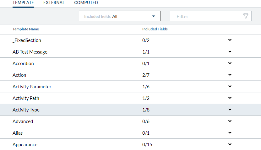The template section of the command center indexing manager field tab now allows you to filter templates to only display those which already have at least one field included. This is especially useful in projects where a larger number of fields are indexed.