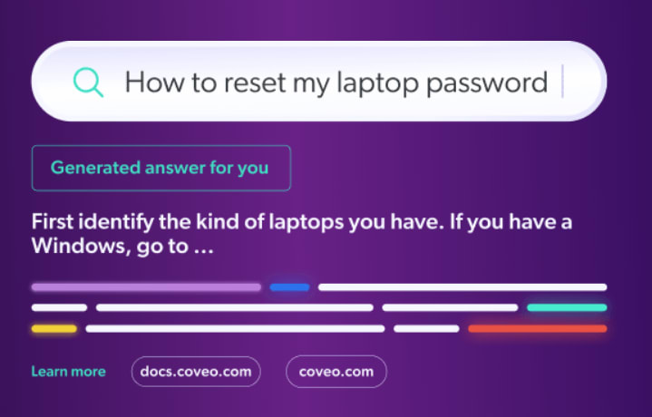 And because of Coveo’s composability, Generative Answering can be added into any of your digital channels, from self-service portals to commerce sites to in-product experiences or intranets, all from one platform. What’s more, the Coveo platform offers robust agnostic capabilities — meaning it can work within any system, internal or external. Rather than the traditional monolithic structure, you take advantage of a best-of-breed platform, without the tech stack lock-in.