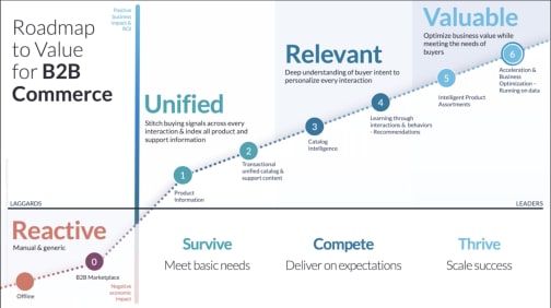 Coveo has actually come up with a “Roadmap to Value for B2B Commerce” that outlines actionable steps that companies can take to create the unified, relevant, and valuable experiences that their customers expect today and will continue to expect tomorrow.