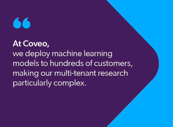 At Coveo, we try to do cutting-edge AI research, but with a multi-tenant agenda. In a multi-tenant scenario, the goal is not to optimize a model for a given shop that you control (say, Amazon researchers improving the Amazon recommender system). Rather, the goal is to build a robust model that works well across dozens of deployments, with target shops varying wildly in size, catalog quality and shopper behavior. At Coveo, we deploy machine learning models to hundreds of customers, making our multi-tenant research particularly complex.