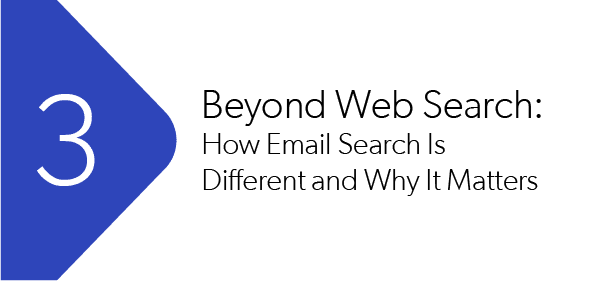 The lifetime of emails is also a particularity that needs to be uniquely addressed. On one hand, most emails have a very short life span and recency is definitely a predictor of the level of intent to revisit. On the other hand, a user’s preference to search rather than browse has an inverse relationship with the email’s age. Therefore, email engines must be able to take all of these clues and various temporal aspects into account, as that is the only way to provide delightful user experiences.