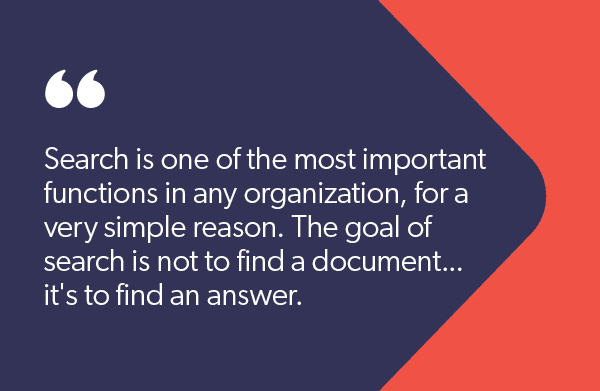 Search is one of the most important functions in any organization, for a very simple reason. The goal of search is not to find a document … it’s to find an answer.