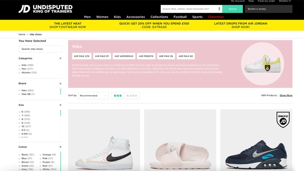Traditionally, search engines aim to maximize the number of relevant results returned to a user. The assumption is that the more items returned, the more likely searchers will be able to find just the right thing. For example, JD returns almost 700 products for my “Nike shoes” query.