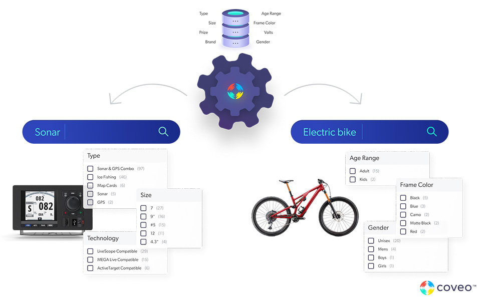 An advanced information retrieval feature, faceted navigation amplifies your searchers’ natural tendency to organize information into categories. It empowers visitors to control their user experience by tweaking search results according to their interests by selecting attributes. Search facets enable visitors to refine options and match results to their search intent, surfacing relevant products or content.