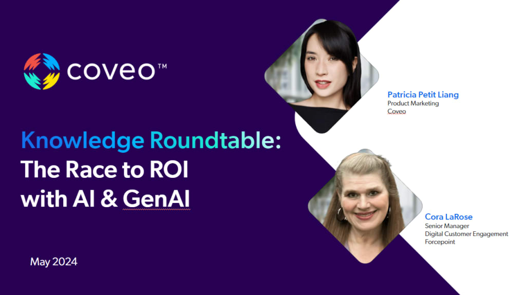 Cora LaRose, Senior Manager of Digital Customer Engagement at Forcepoint, joined Coveo Service & Knowledge Product Marketing Manager Patricia Petit Liang to discuss Forcepoint’s journey in a recent customer roundtable, The Race to ROI with AI and Gen AI. Let’s take a closer look at their winning strategy for service excellence and explore the results they achieved.
