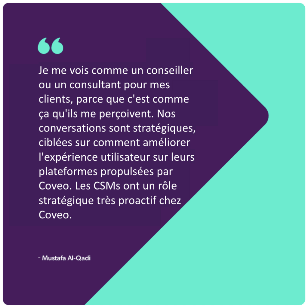 Coveo propose également 5, oui CINQ, positions le long de leur parcours professionnel en réussite client, ce qui permet d’offrir des opportunités de développement de carrière pour les CSMs :
