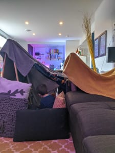 « J’ai vécu une situation un peu similaire durant mon enfance lorsqu’il y a eu un super cyclone dans la région où nous vivions. Tout ce dont je me souviens, c’est tout le plaisir que j’ai eu avec mes parents pendant ces moments stressants! On pense que c’est la même chose avec notre fille qui est trop jeune pour comprendre tout ce qui se passe autour d’elle. Nous prenons chaque jour comme il vient. Avoir une routine, des rendez-vous virtuels et des appels vidéo avec la famille nous aide à rester sains d’esprit»