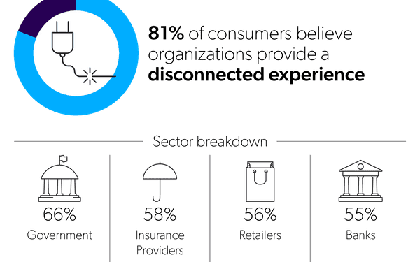 Salesforce-owned Mulesoft found that 81% of customers believed that one out of five organizations across industries — banking, insurance, retail, healthcare, and public sector — provide a disconnected experience. They fail to recognize preferences across touchpoints and provide relevant information in a timely manner.