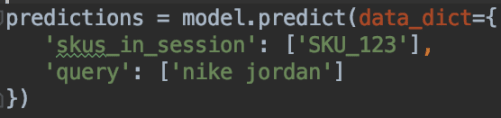 If you run the code in the shared repository, you will be able to supply your own input products/queries and easily visualize model predictions: