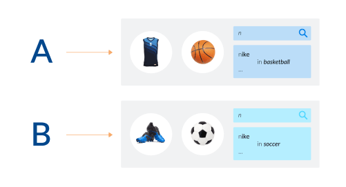 Given a basketball-themed session and the somewhat vague query “nike shoes”, our model can in principle make two decisions: