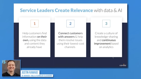 This was the question that Coveo Senior Marketing Manager, Bonnie Chase, aimed to answer when she sat down with General Manager of Customer Systems at Xero, Airdre Knox, and Senior Manager of Tools and Tech at BlackBerry, Justin Ramage.