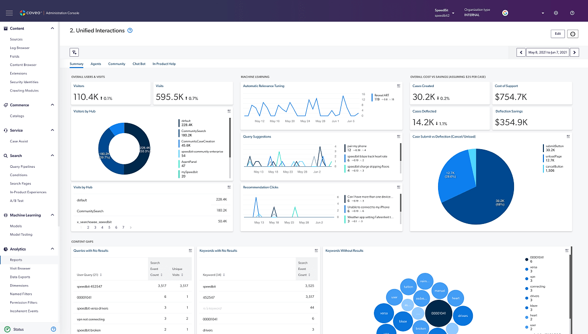 Build an intuitive user experience with analytics. With Coveo and Adobe Analytics available on your AEM dashboard, you can easily determine what your visitors are looking for and what kind of content they respond to the best. Analytics can also help you determine knowledge gaps and other kinds of missing content on your site.