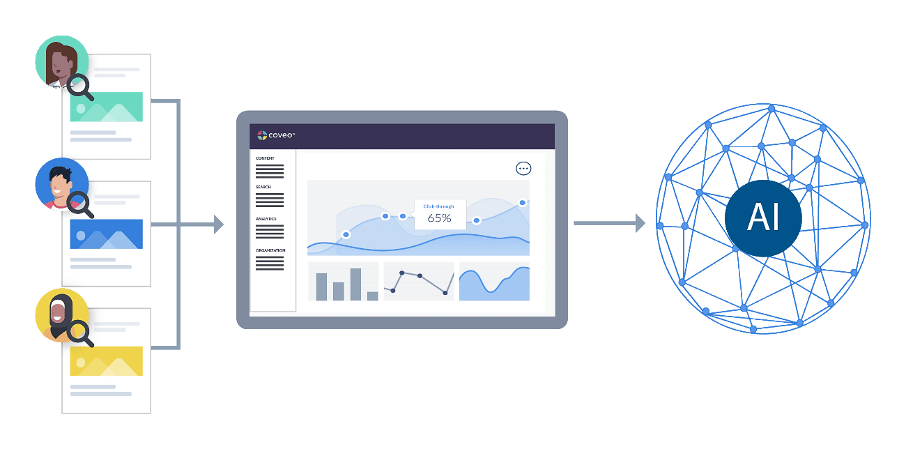 Coveo interprets your website’s data, sorts through your AEM content, and delivers relevant results to anybody who visits your website — matching specifically to their intent. For a large website, even the tiniest improvement in the number of conversions has an impact on revenue.