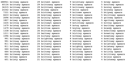 Typos are everywhere. Google reports that the following are all treated as misspellings of the query Britney Spears: britian spears, britney’s spears, brandy spears and prittany spears. They’re actually becoming increasingly more widespread, as typing on mobile devices is more challenging and typos are more frequent.