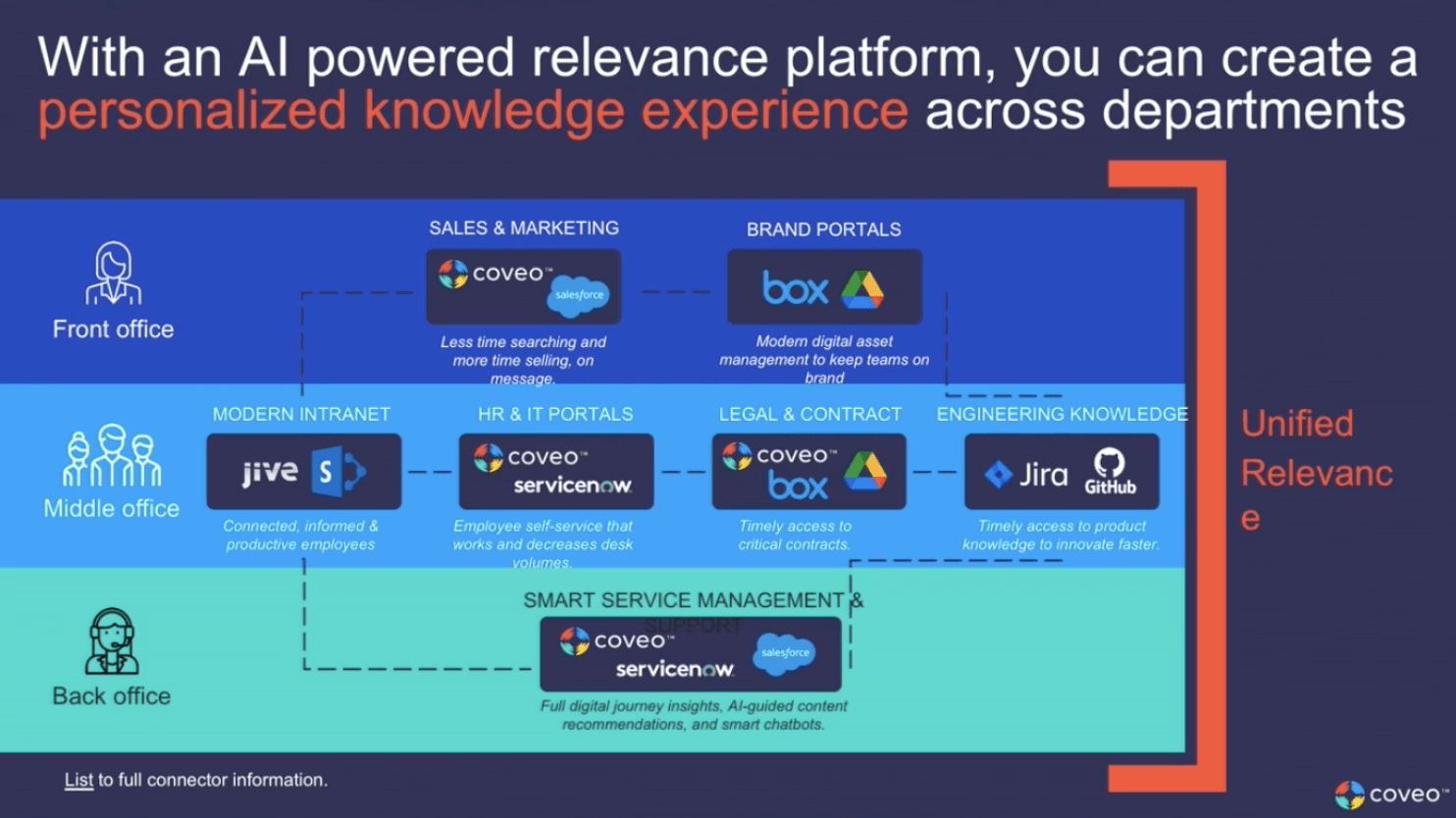 - One search and knowledge experience across all applications. This is important for all employees but is particularly important for newer employees in work-from-home environments.
