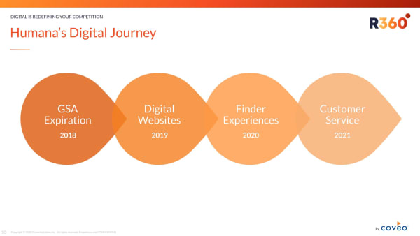 Humana focused on customer experience using the Coveo Relevance Platform. And as Humana continues to transition, they maintain their focus on bringing together all of their available data and using analytics to understand what customers really need – and need next.