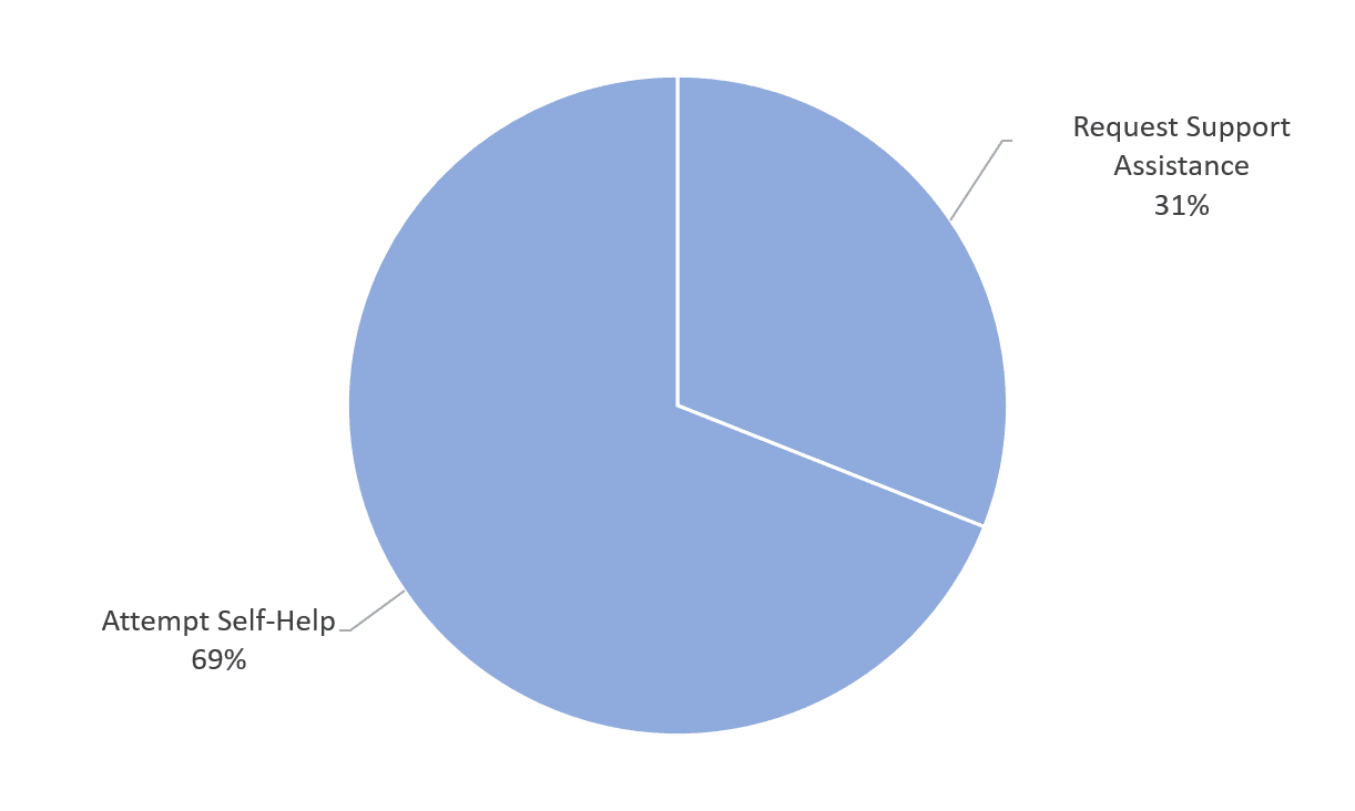 Fortunately, customers do not always want a person-assisted support session to get the answers they need. In fact, more than two-thirds (69 percent) of customers indicate that when they have support needs, they will attempt to solve the issues by themselves. Less than a third (31 percent) of customers indicate they will request assisted support immediately.