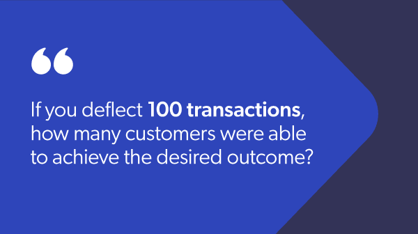 If you deflect 100 transactions, how many customers were able to achieve the desired outcome? Perhaps all, perhaps none – deflection alone does not tell you.