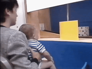 A baby observing possible vs. impossible physical scenarios: he may not know how to explain his physical intuition with his words, but his face says a lot!