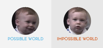 The picture below shows the baby’s reaction for each of the two scenarios and leaves little room to doubt that the impossible reality was not what he expected.