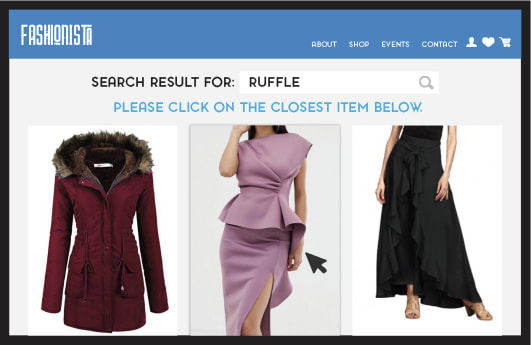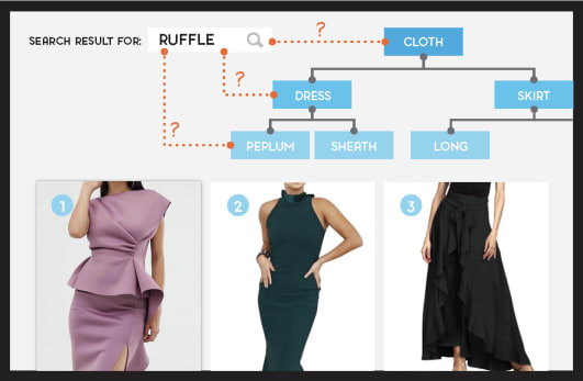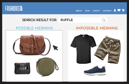 And now, a question to introduce lesson number two: how can a search engine conduct experiments since it only “lives” in your browser? The answer is obviously you. By using your feedback (in the form of clicks over products after you searched for “ruffle”), the AI tests the meaning hypotheses generated with its knowledge graph. In the mind of the machine, shoppers are the metaphorical equivalent of a table on which to smash toys.