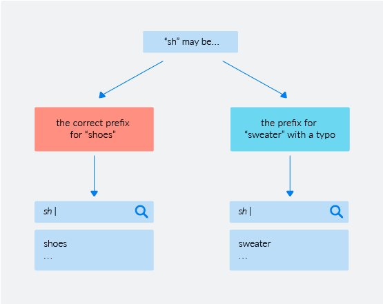 - the user might be searching for something whose root is “close enough” to “sh”, but not exactly (say, sweater).