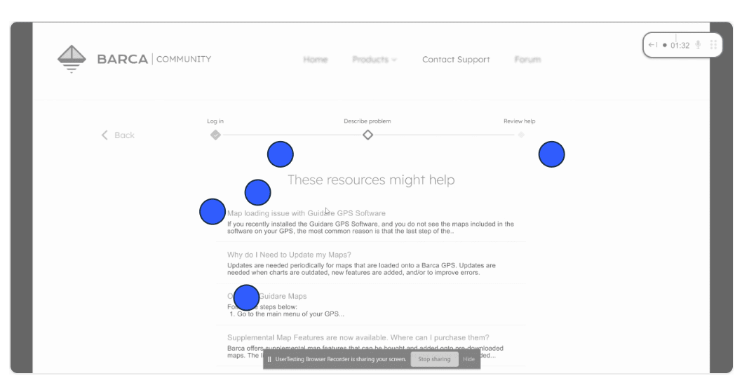 In contrast, heat maps used during the study (see image 3) showed that participants who saw five article titles with snippets (in the case assist design that did not follow UI best practices) were hesitant to click on the first result. They went back and forth between options before making a decision. This likely was because they were overwhelmed with information.