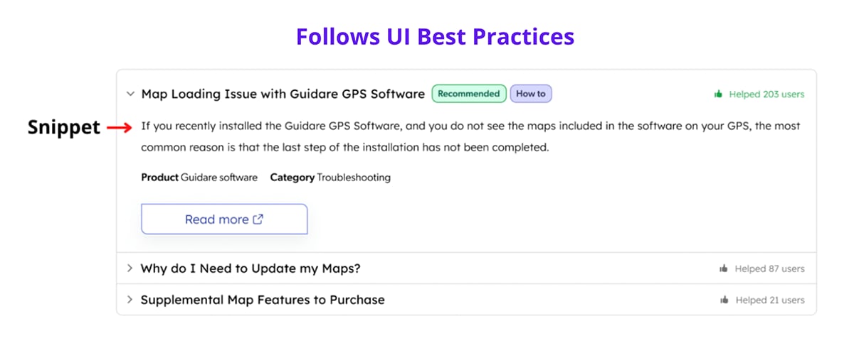 Suggesting documents during the case submission process, however, is not enough to empower customers to find the solutions that they need. While the quality and relevance of the content you suggest is important, how you present it is critical, too. There are visual design best practices that play an important role in case deflection.