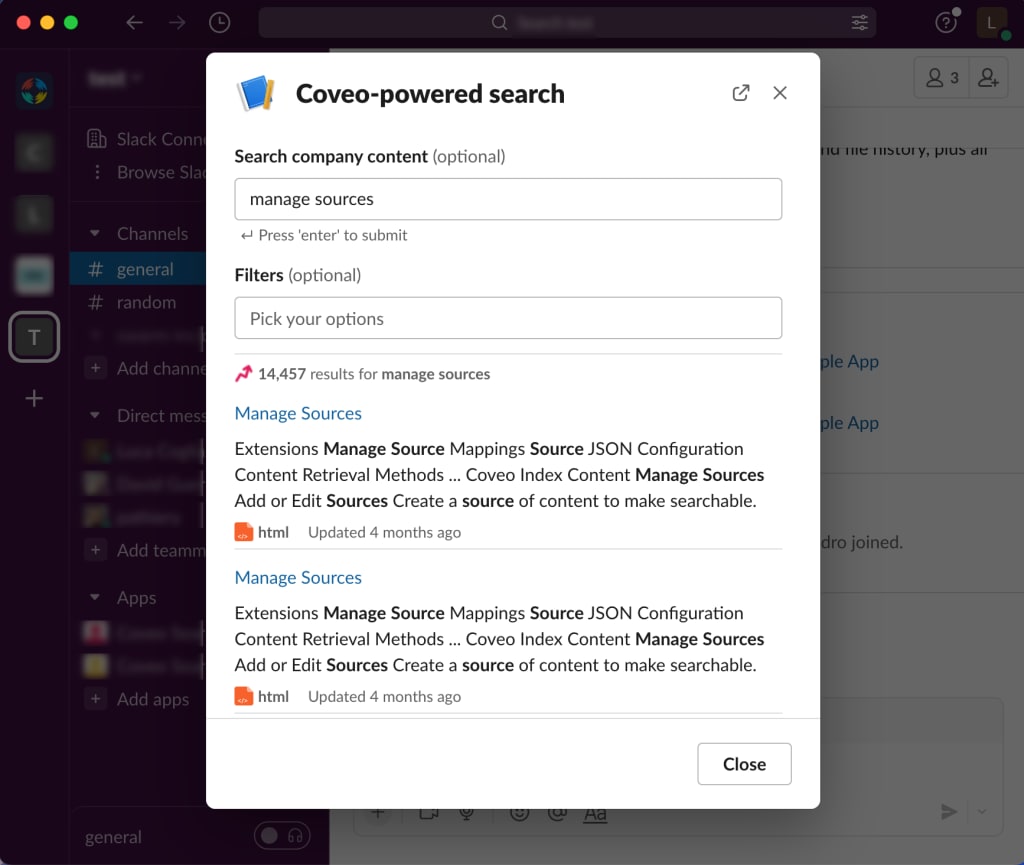 Coveo’s Slack connector is an example of this functionality in the digital workplace. Proactive content recommendations adapt to the application the employee is using, and the project they’re working on, leading to powerful and rewarding “in the moment” relevance.