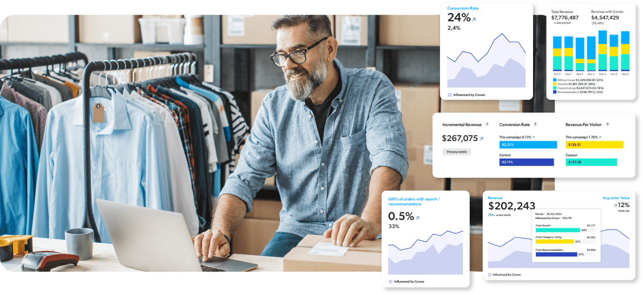 Keep in mind that a holistic approach is important when it comes to ecommerce KPIs. Search and product discovery software should report and display performance based on several key metrics.