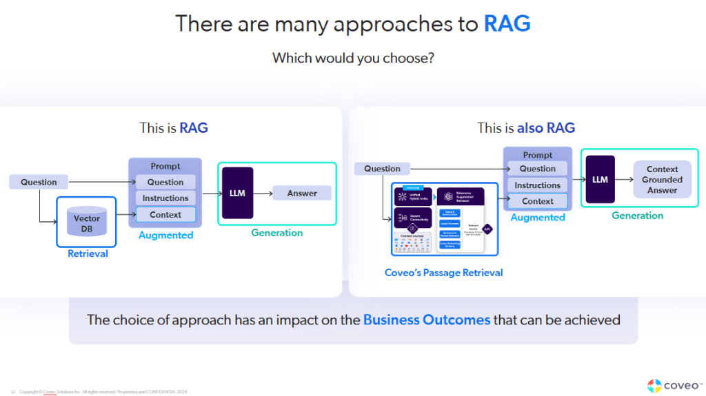 In the realm of AI, providing an answer when grounded information is unavailable can lead to false answers or hallucinations. Coveo’s approach prioritizes accuracy by ensuring that if the relevant data is not accessible, the system refrains from generating a response. This practice not only prevents the dissemination of incorrect information but also builds trust by demonstrating a commitment to reliability and truthfulness in AI outputs.