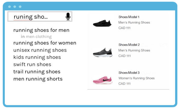 Successful search means minimizing shoppers’ time spent typing – and key to doing so is enhancing the browsing experience. This makes search intuitive and easy to use. (And leads to impulse buys!)