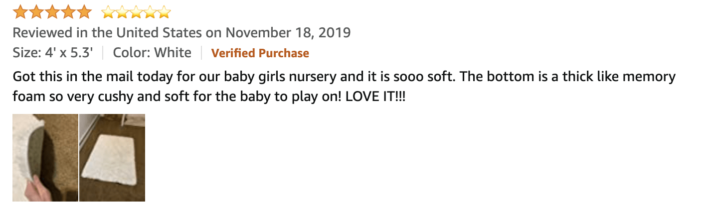 Product Reviews: A customer review that includes images of a product can help to give an even fuller picture of the experience than those with just words. Seeing the product in a real-life context helps customers imagine it in their own context.