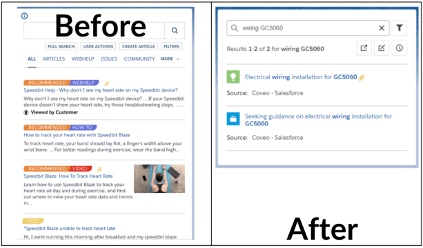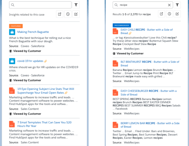 The Coveo Lightning Insight Panel before and after its summer transformation