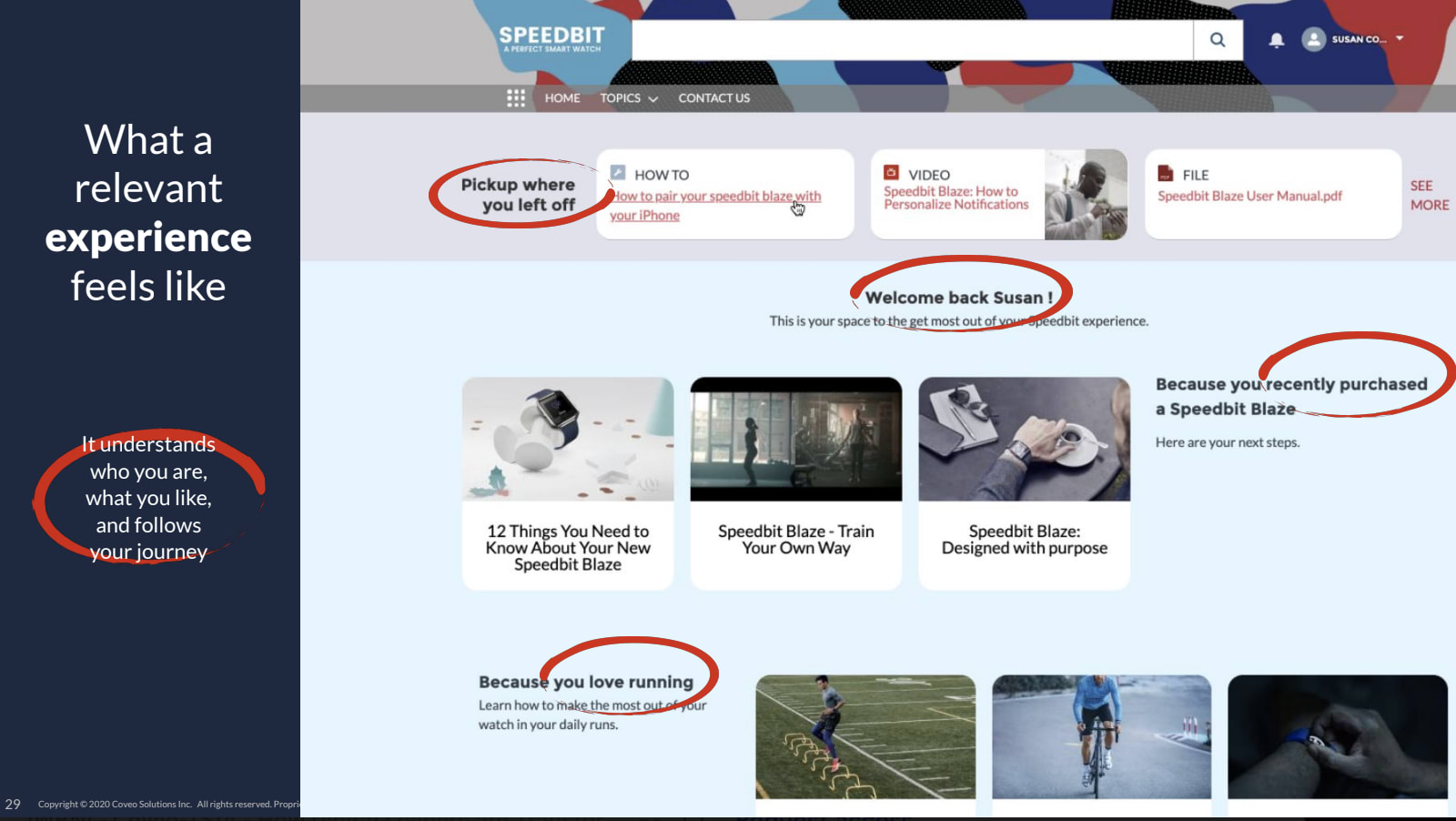 - Automatically filter irrelevant results based on user profile data and past behavior. For instance, you can filter out any search results for products the customer doesn’t own or use.