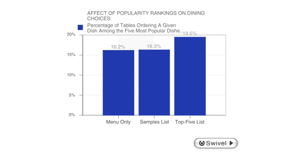Despite geography, people seem to react the same to the reassurance of proof from others. A study done in Beijing, China, showed a 13% increase in orders of a dish at a restaurant if it was labeled as being among the ‘most popular’ at the restaurant.