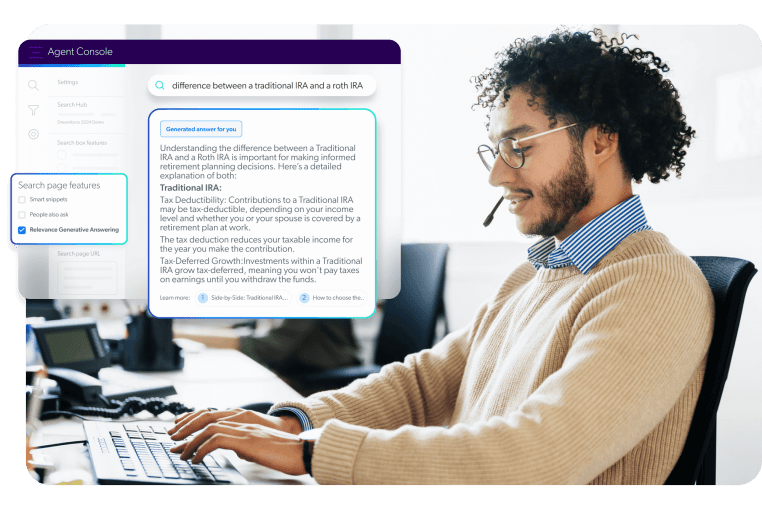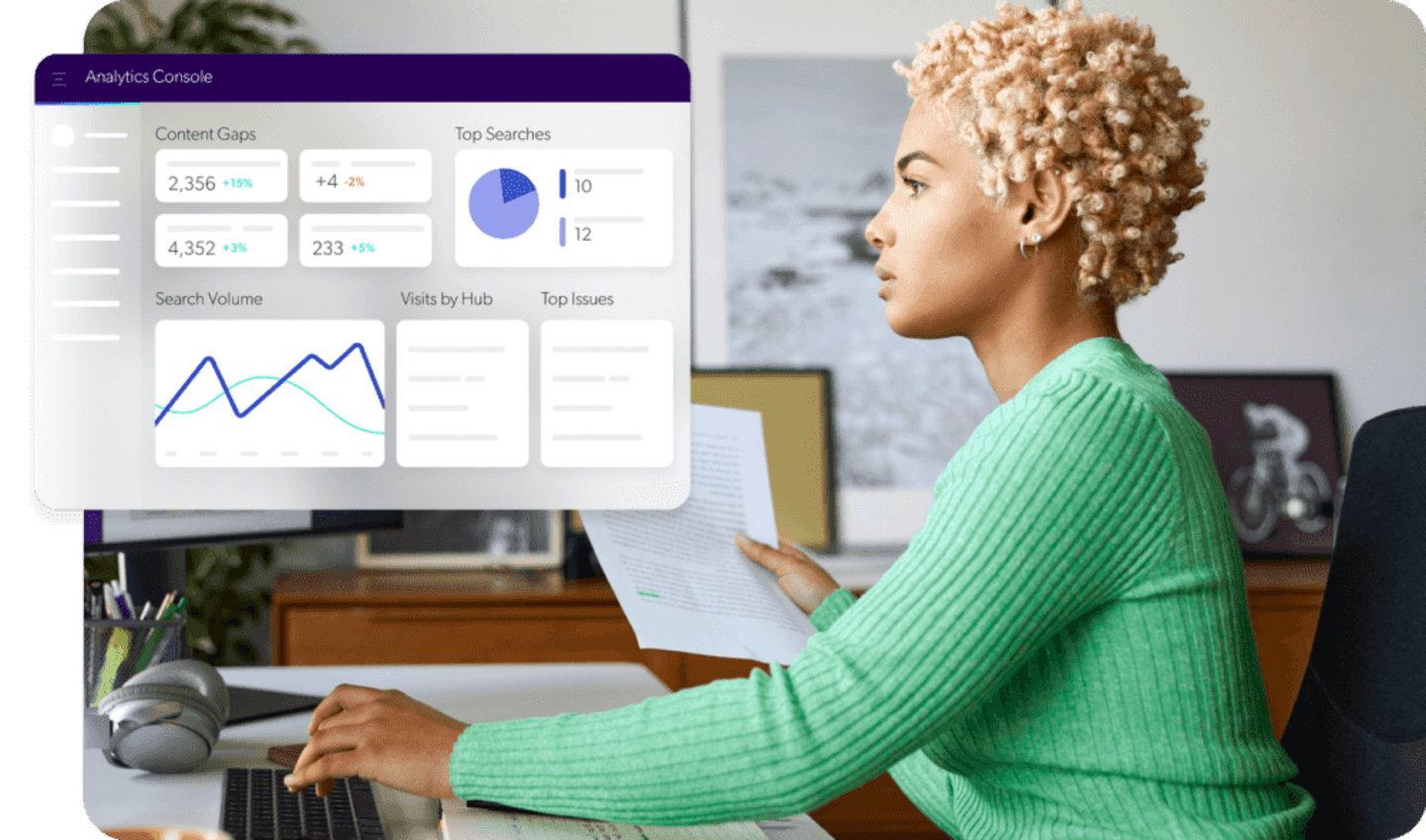 Ermöglichen Sie Ihren Mitarbeitern und Finanzberatern skalierbaren Self-Service mit intelligenter Suche, relevanten Empfehlungen und einer optimal gesteuerten Customer Journey. Maschinelles Lernen optimiert den Wert, den Sie von Coveo erhalten, da es Daten aus Mitarbeiterinteraktionen sammelt. Analysen bieten Einblicke in Wissenslücken und Möglichkeiten zur Steigerung des Engagements.
