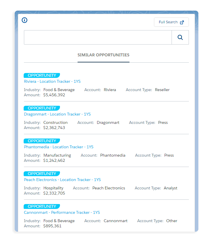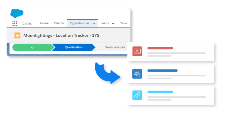 Equip your sales team to succeed with customized rules to search for content based on any Salesforce object such as Opportunity Name, Account, Industry or Region.