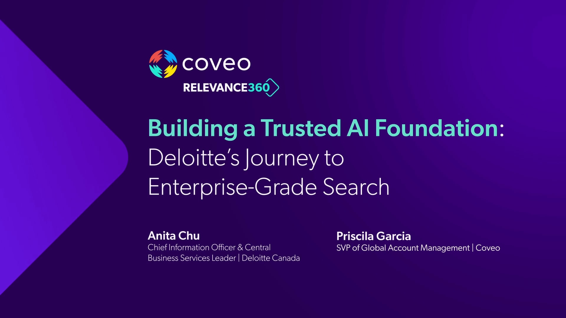 I'm joined by Anita Chew, CIO at Deloitte Canada. So Anita, welcome. And why don't you tell us about your role and your team at Deloitte? Well, you, and I'm really happy to be here. So I'm the CIO at Deloitte, and my job is really to enable all the people at Deloitte. So we're over fifteen thousand strong, and our job is to make sure that we provide the best technical solutions that enable our people to actually deliver for our customers each and every single day. Excellent. So tell us about the challenges or opportunities that led you to an AI search initiative. Well, it's an interesting story for me because we have been dealing with a old intranet site. We have a lot of technical debt, right? And as a result of that, we're dealing with a platform that was over ten years old at the time. And we need to replace our internal intranet site. And so we went out and we asked people, hey, what would we need in a new intranet site to engage and provide the information that people needed? And at that time what we found out was the number one thing that people came back with was it doesn't matter how pretty it's going to be, it doesn't matter what you're looking at doing, the biggest thing is to be able to find the information that you need and for it to be relevant. And so I remember asking people saying, well, you can find information really easily. What do you mean by you can't find information? And so I went in and actually did it myself and started to do some searching on our old intranet site. And it came back with stuff that was from nineteen ninety nine, things that were like really old, no longer relevant, policies and procedures that were outdated. And so we really then went on this search for a new AI search solution. And what we wanted was something that was going to really be enabling a capability to look across multiple platforms. We have a very complex technical system. And so we wanted a search capability that can go and be federated and we can pull together a lot of different knowledge stores across different platforms overall. Interesting, very glad that you went and did that exercise, Anita. So what were the risks of not solving that problem? How did you identify what they were? The biggest risk was productivity overall. So one of the things that we heard repeatedly from people were we were wasting time looking for information, we couldn't find information when we needed to. We could potentially find the wrong information, just like the article that I found from nineteen ninety nine, which no longer is relevant. But also at the same time, you needed to rely on tribal knowledge. So there was a great deal of frustration from our folks around being able to get the information that they needed at their fingertips. And so that's when we actually embarked on taking a look at how do we actually make that experience much better for people. And can you shed some light on the evaluation process? How did you go about it? So the evaluation process was an interesting process because we actually went out and basically did a market scan. We said, well, who are the big players that are out there? And we wanted something that was going be scalable. We wanted something that actually had strong security, a strong security posture in place. Security is really important to us because in our business, it's about trust, right? It's about how do we actually serve not only our customers, but also our people. And so we needed something that was actually going to be trusted, it was a market leader, it would be expandable, scalable, and also could go across a number of different platforms. And so that's kind of how we went about looking at functional and non functional fit. You talk already a lot about the criteria, what functionality mattered the most when evaluating the solutions outside of the security? So when you talk about functions, what was most important? So our overall vision was to be able to go across many platforms. So Deloitte has knowledge stores that exist in all different types of systems, applications, different products. And because knowledge is what we do, right, that's our business, We needed to be able to actually find that information. So what was really critical was something that was expandable, scalable, and something that could be used. And also, that ideally it could be easily, we could find a partner that could work well with us together as we expanded this and look to bring quick ROI. That was the other part of this was we had a very tight timeline because we were replacing end of life technology, and we needed a solution that was actually going to be able to get to market very quickly and actually provide high return on investment. And so those were all critical things that we were looking at when we started to do the search. So there are a lot of people out there, a lot of enterprises that spend a lot of time experimenting with standalone Gen AI solutions. How important was it for you to have that trusted AI foundation that you found in Coveo? Yeah, so Coveo did come out as the choice for us. Coveo just hit, kind of checked all the boxes for us overall. It was important for us to really think about not just necessarily finding, you know, like an experimental or AI type solution, because you could build something if you wanted to. We had other systems that we were looking at. It was really important that we were looking at an enterprise grade solution from, you know, a customer out there. Sorry, an enterprise grade solution from a product out there overall. And that's where Coveo came in. So it was really important for us to have something that was scalable and that was AI ready. And how does then Coveo support your broader AI or your digital transformation, right, strategy? Because it's important for you as a CIO, but also this project is very strategic for you. It is strategic for us. We're replacing a ten year old system, and we're trying to bring it into the modern age. 