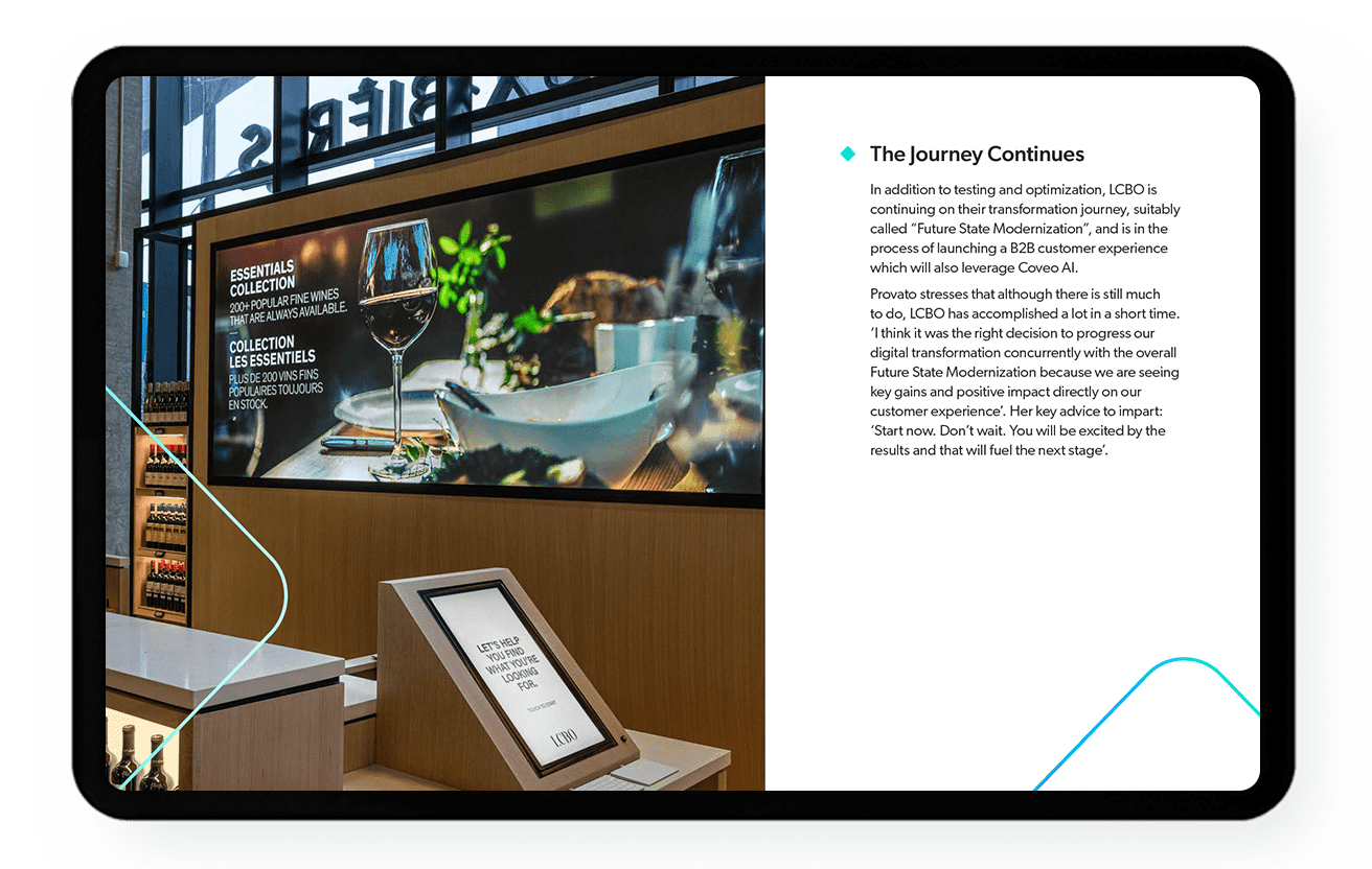 LCBO's tangible achievements following the integration of Coveo and the transformative impact on their key performance indicators. (Page 7-9)